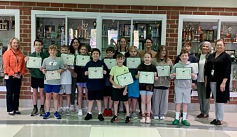 Pictured left to right, front row: Superintendent Julie Jones, Zander Huffman-6th Gr. Student, Franklin Gilmore III-6th Gr. Student, Aaron Holzapfel-6th Gr. Student, Lillian Helman-6th Gr. Student, Caleb Landis-4th Gr. Student, Benjamin Goodenow-4th Gr. Student, Aden Coblentz-5th Gr. Student, Jaxsyn Hupman-7th Gr. Student, Emma Schleiger-4th Gr. Student, Hayley Kennett-7th Gr. Student, Miles Baker-5th Gr. Student, and Cole Berk-7th Gr. Student,