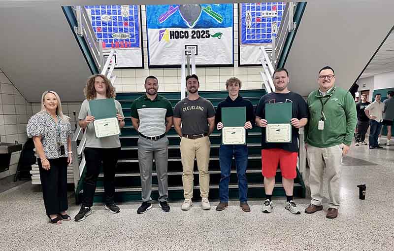 Pictured left to right: Superintendent Julie Jones, Damien Lock-11th Gr. Student, Teacher Ryan Eldridge, Teacher Jake Porter, Conner Leas-12th Gr. Student, Elijah Worden-12th Gr. Student, Principal Stan Hughes
