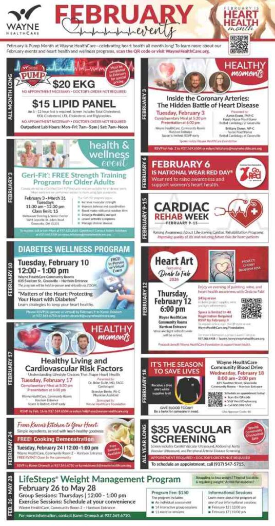 Wayne HealthCare is celebrating all month long with heart-healthy events, screenings, classes, and wellness programs designed to support cardiovascular health and overall well-being.
