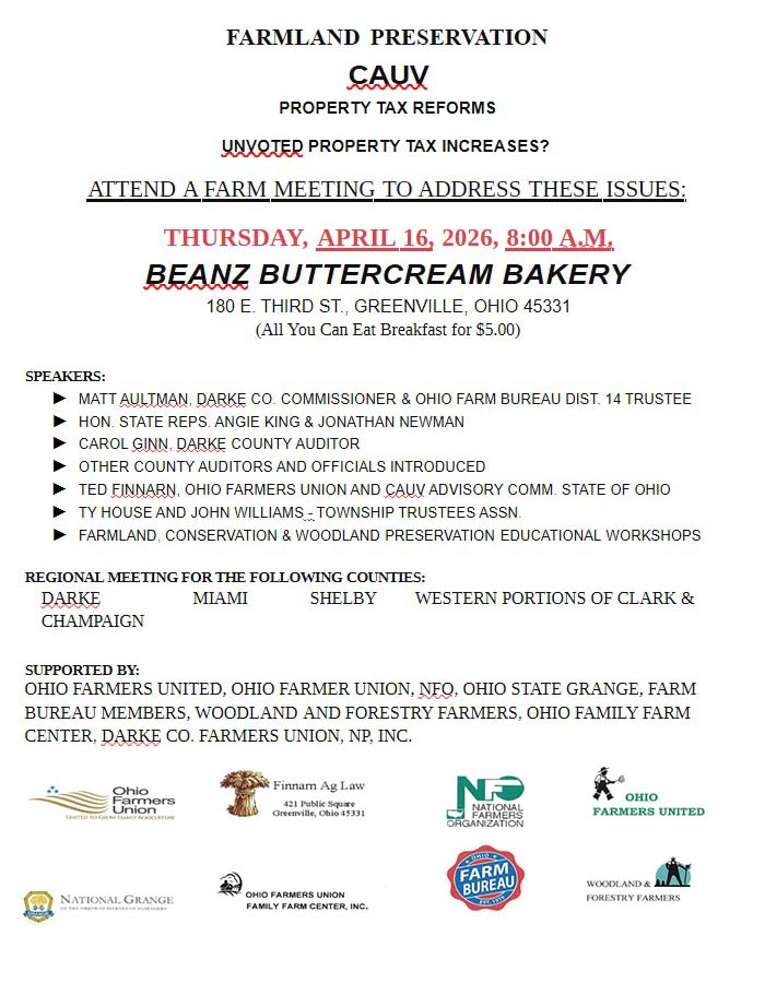 Agriculture Featured Attend a Farm Meeting to address property tax issues Staff April 1, 2026 Post navigation Previous: Annual Triple H Farm Spring Consignment Auction – Greenville – 4/4Next: Betty Sarah O’Dell