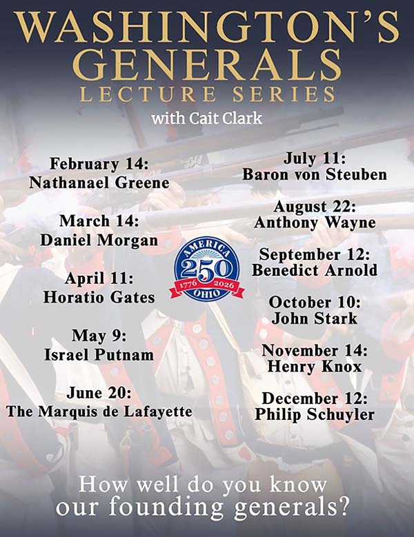 In honor of America’s 250th year of independence, the Garst Museum will be celebrating Greene and other generals from the American Revolution who played significant roles in Washington’s Generals Lecture Series. Greene, Wayne, and many others will be presented in this year-long series, developed and delivered by Cait Clark, Garst Museum’s Administrative Director. Over the course of the series, Clark will be talking about well-known generals such as Henry Knox and Benedict Arnold, as well as less-famous ones such as John Stark and Philip Schuyler.